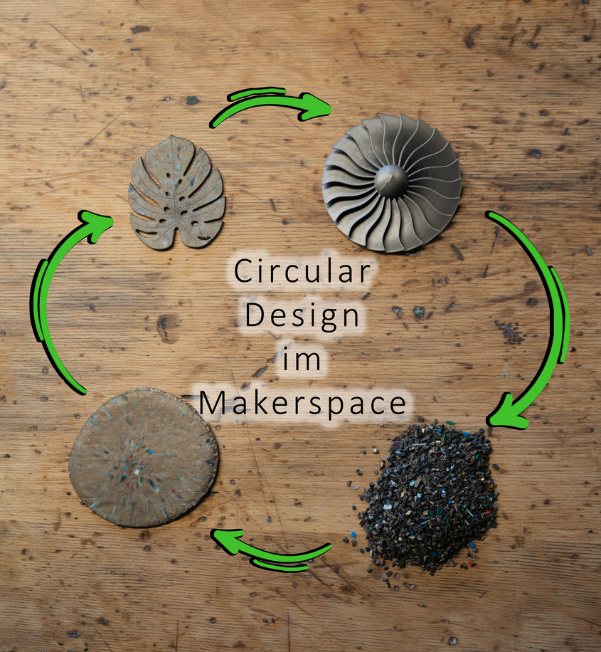 Wo, wenn nicht im Makerspace, lässt sich der Gedanke der Kreislaufwirtschaft besser erleben? Durch die Vielzahl an Maschinen und Materialien sowie das technische Know-How und die interdisziplinäre Zusammenarbeit entsteht ein Raum zum Ausprobieren und Lernen. Hier treffen vielfältige Menschen, Ideen und Kompetenzen aufeinander: